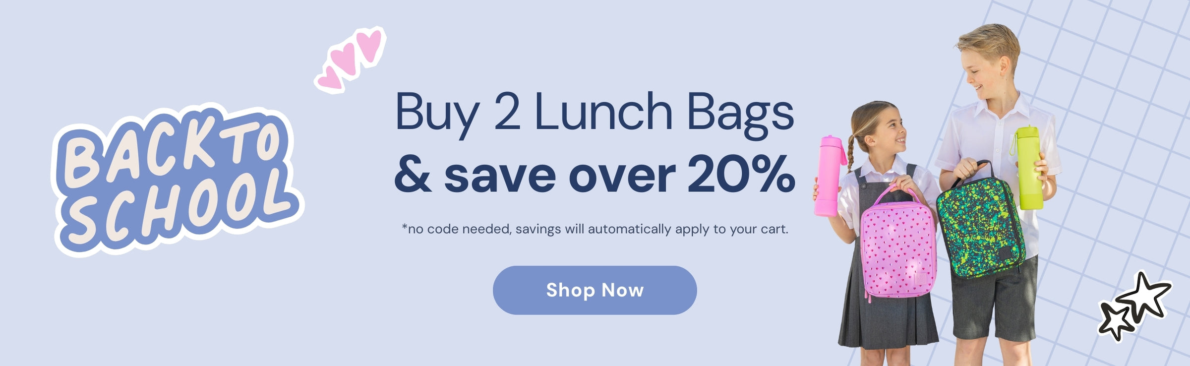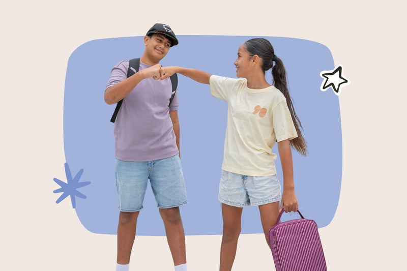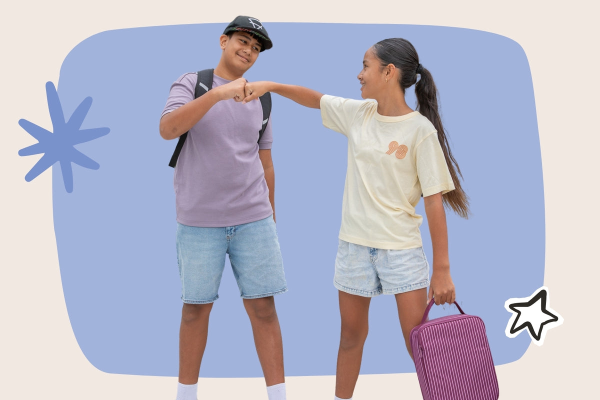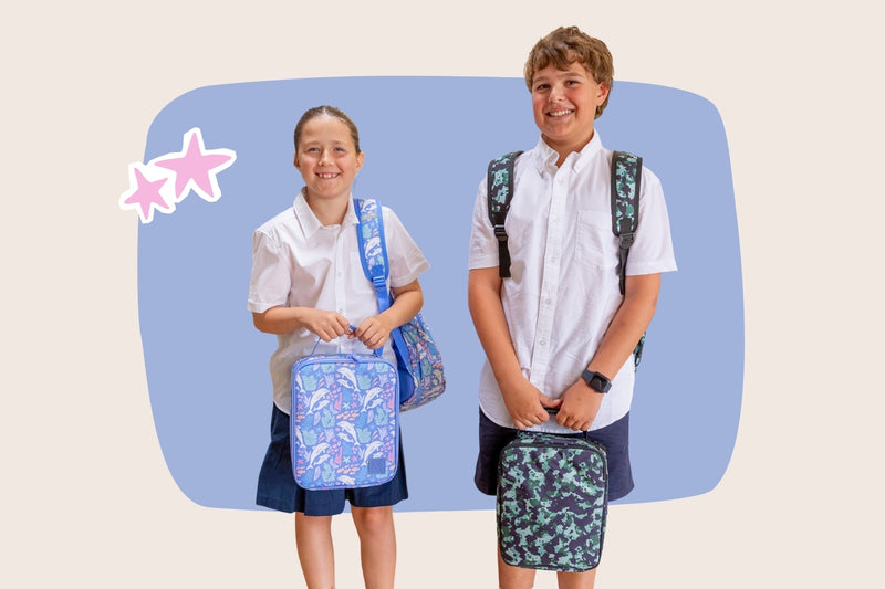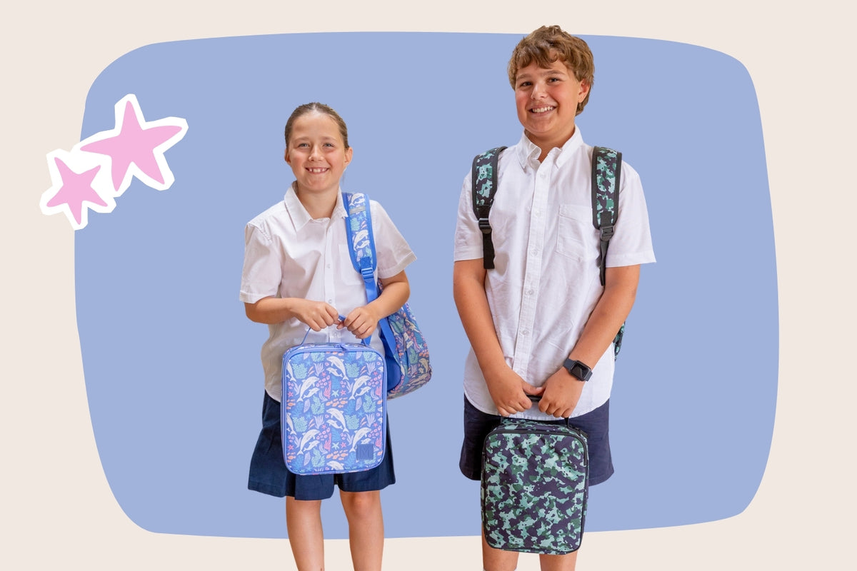 The love matching sets and brand-new everything and are still learning how to open lunch boxes, packets and refill their water bottle. Lunch works best split into two boxes — otherwise it’s gone in one hit!