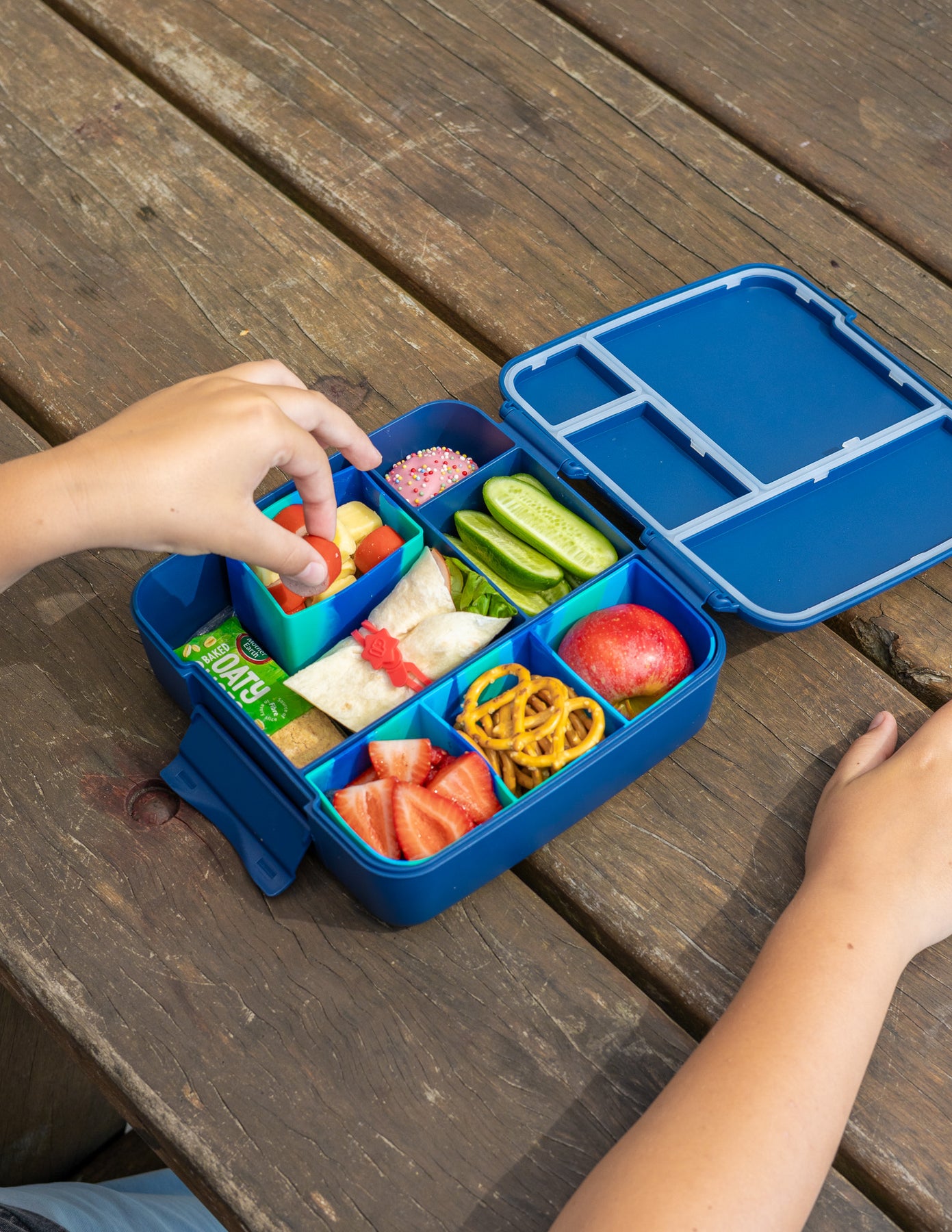 Bought the feast and snack boxes for my 4yo. These are great for days out or as an after kindergarten snack. My daughter is able to easily open and close the latches on her own.