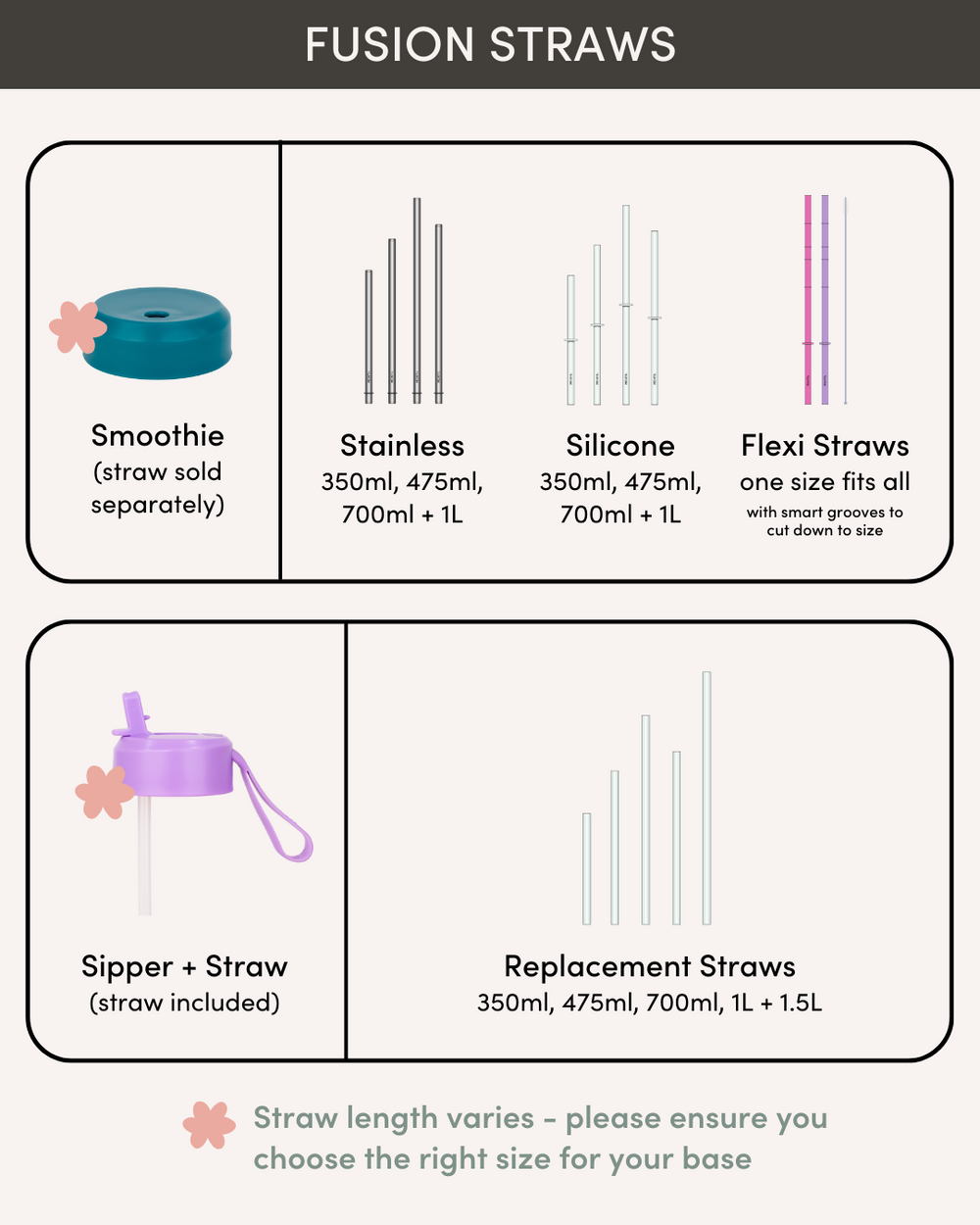 Designed to fit snugly inside our 475ml Smoothie Cups, with the option to cut them to size for our smaller 350ml Smoothie Cups. Kids will enjoy hours of fun with these semi-transparent twirly straws, that are dishwasher safe for easy cleaning!